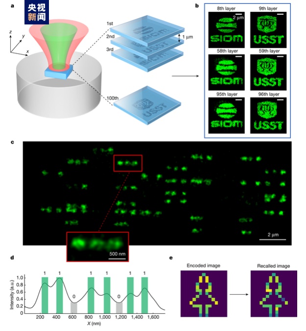 近日,中國科學(xué)院上海光學(xué)精密機(jī)械研究所(以下簡稱上海光機(jī)所)與上海理工大學(xué)等科研單位合作,在超大容量三維超分辨光存儲研究中取得突破性進(jìn)展。研究團(tuán)隊利用國際首創(chuàng)的雙光束調(diào)控聚集誘導(dǎo)發(fā)光超分辨光存儲技術(shù),實驗上首次在信息寫入和讀出均突破了衍射極限的限制,實現(xiàn)了點尺寸為54nm、道間距為70nm的超分辨數(shù)據(jù)存儲,并完成了100層的多層記錄,單盤等效容量達(dá)Pb量級,對于我國在信息存儲領(lǐng)域突破“卡脖子”障礙、實現(xiàn)數(shù)字經(jīng)濟(jì)的可持續(xù)發(fā)展具有重大意義。相關(guān)研究成果于2024年2月22日發(fā)表于《自然》(Nature)雜志。